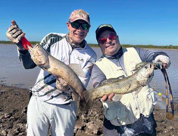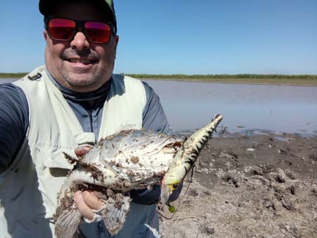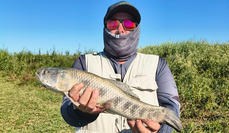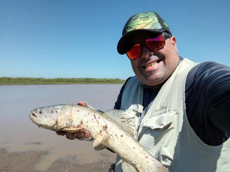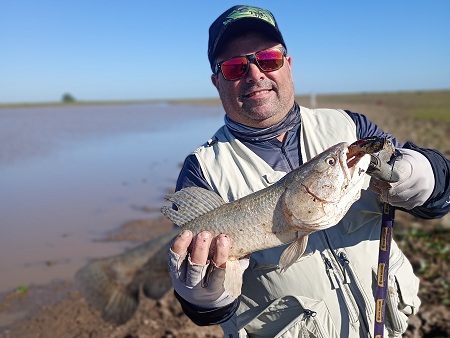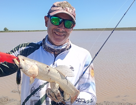 Llegamos al mediodía con una veintena de capturas de ambas cañas, realmente un resultado precioso. Aprovechamos y le dimos vuelta a la laguna completa para ver desde que lado la actividad era mas firme y la realidad el problema no era la actividad sino el viento,. Por lo que la costa donde el viento de espalda nos ayudaba a lances mas largos era mucho mejor.