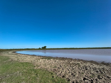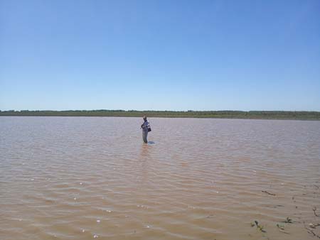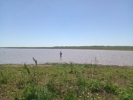 Con actividad constante yo opté, a sugerencia de Juampi, seguir recorriendo la costa de la laguna mientras Damian prefería adentrarse al agua y vadearla. Ahi nos dimos cuenta que la laguna estaba baja lo que nos obligaba a hacer lances lo mas largo posible para llegar al centro donde con mejor caudal habia actividad mas pareja.