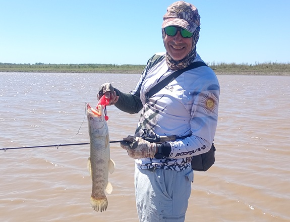 Ya en los últimos lances, directamente ambos salimos a la costa en busca de descanso encontrando un punto estratégico donde no teniamos necesidad de meternos al agua y lograr la distancia necesaria. Tema aparte, Dami perdió su spinfish de tanto ser mordido, por suerte me quedaba uno de back up en la caja. Este señuelo fue letal letal y se llevó el premio Chamigo al jugador mas valioso de la fecha.